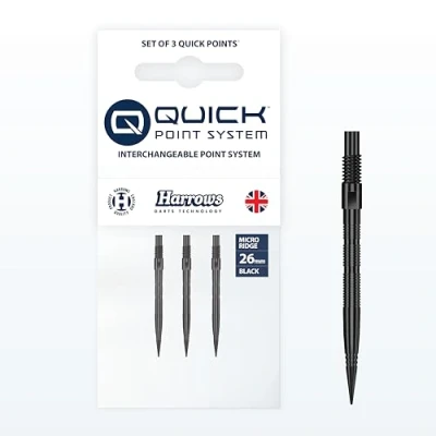 Micro Grip Quick Points feature a precision CNC-milled surface, adding extra grip exactly where fingers naturally rest. Designed to improve confidence and control during release for more accurate, consistent throws. The micro-textured finish helps secure the dart firmly in the board, reducing bounce-outs and preventing darts from being knocked loose by incoming throws—ideal for competitive players seeking dependable performance. Compatible with the Harrows Quick Point tool, these points can be swapped in seconds. Adjust length or style with ease—no delays, no downtime, perfect for practice sessions, league nights, and tournaments. Built with strength and longevity in mind, Micro Grip Quick Points use a reinforced no-break construction, ensuring dependable performance under pressure and seamless integration with compatible screw-point barrels. Harrows Darts: Over 50 years of darts manufacturing, join the the world’s most widely distributed darts brand and start your journey to playing like Harrows Pro Players.