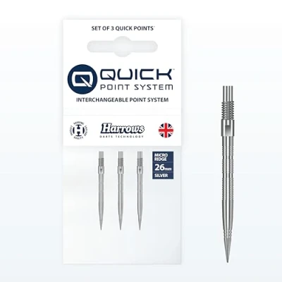 Micro Grip Quick Points feature a precision CNC-milled surface, adding extra grip exactly where fingers naturally rest. Designed to improve confidence and control during release for more accurate, consistent throws. The micro-textured finish helps secure the dart firmly in the board, reducing bounce-outs and preventing darts from being knocked loose by incoming throws—ideal for competitive players seeking dependable performance. Compatible with the Harrows Quick Point tool, these points can be swapped in seconds. Adjust length or style with ease—no delays, no downtime, perfect for practice sessions, league nights, and tournaments. Built with strength and longevity in mind, Micro Grip Quick Points use a reinforced no-break construction, ensuring dependable performance under pressure and seamless integration with compatible screw-point barrels. Harrows Darts: Over 50 years of darts manufacturing, join the the world’s most widely distributed darts brand and start your journey to playing like Harrows Pro Players.