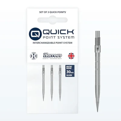 Harrows Micro Grip Quick Points Precision CNC Milled Dart with Enhanced Finger & No Break Design Fast Swap Point System (30mm, Silver)