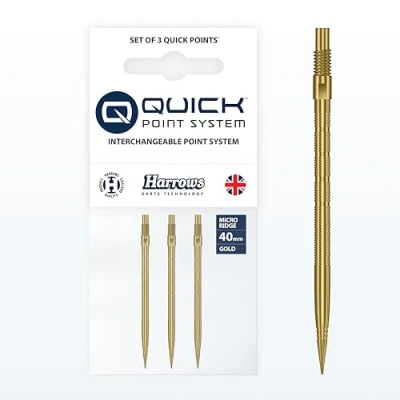 Harrows Micro Grip Quick Points Precision CNC Milled Dart with Enhanced Finger & No Break Design Fast Swap Point System (40mm, Gold)
