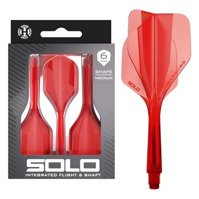 Harrows Solo Integrated Flight & Shaft System 3 Molded Flights Shafts One Piece Aero Core Construction Fixed 90 Design for Stability (Red, Medium)