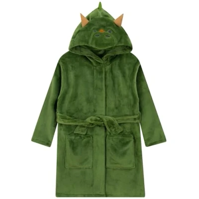 Harry Bear Dinosaur Dressing Gown, Dino Boys Cosy Bathrobes, Green 5 6 Years