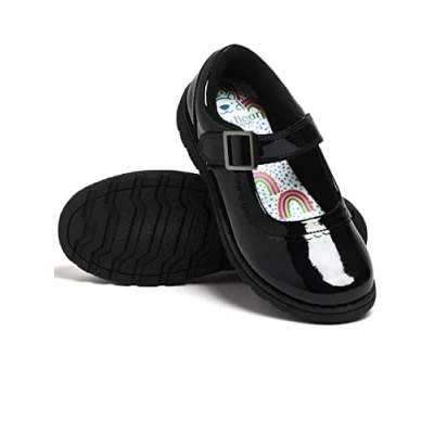 Designed by Harry Bear These black patent shoes feature a rainbow insole for comfort T-bar with buckle fastening for support Get your little one ready for back to school in these cute rainbow school shoes Perfect for any little girl to head off to school in