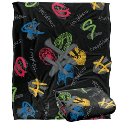 HARRY POTTER Blanket, 152 x 127 cm Graffiti Pattern Silky Touch Super Soft Throw Blanket