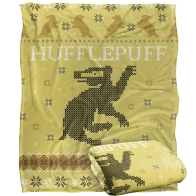 HARRY POTTER Blanket, 152 x 127 cm Hufflepuff Ugly Christmas Sweater Silky Touch Super Soft Throw Blanket