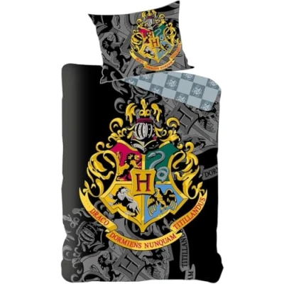 Officially licensed Harry Potter bedding set featuring the iconic Hogwarts crest (“Draco Dormiens Nunquam Titillandus”) for fans of all ages Includes one duvet cover (approx. 140 × 200 cm) and one pillowcase (approx. 70 × 90 cm) — perfect for a single bed. Made from 100% cotton for a soft, breathable, and comfortable sleep surface — durable enough for machine wash and tumble dry use. Reversible design: bold multi-coloured front side and a more subtle grey back with a light crest motif — giving two design options in one set. Easy care bedding: washable at 40 °C, tumble-dry safe, and designed to retain vivid colour and crisp print over time. Certified to Oeko-Tex Standard 100 (Test Institute: Hohenstein) — ensuring no harmful substances and safe for children.