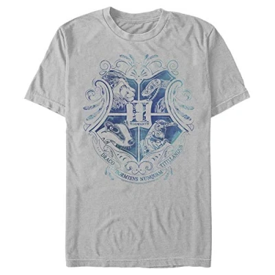 Harry Potter Men's Hogwarts T Shirt, Silver, XL