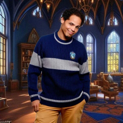 AmazonThis jumper is based on the Hogwarts Quidditch team uniform. It’s perfect to keep you warm even when flying at high speeds. Features a beautifully embroidered badge on the chest with the Ravenclaw house crest, displaying the house’s Raven mascot in the centre. The sophisticated Ravenclaw blue of this jumper stands in proud contrast to the silver bands across the chest, arms, and cuffs The sleek classic chunky rib stitch knit and fitted unisex design of this jumper makes it perfect for any proud Ravenclaw wanting to support the best Quidditch team of all These fabulous jumpers are fully licenced by Warner Bros so you know they’re of the highest quality.