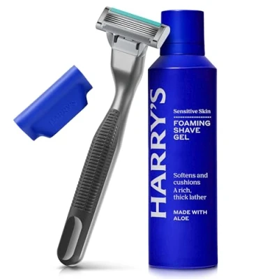 SYSTEM: Our all-new Advanced Pivoting System more easily adapts to the curves of your face for a more comfortable shave* (*vs Harry’s Original razor), push button for easy blade ejection and refill BLADES: Compact, german-engineered, cartridge design provides exceptional precision and versatility. Refined 5-blade technology for a close, smooth shave. 1 Blade = Lasts up to 21 smooth shaves* (*Based on shaving 3 times per week) TRIMMER: Precision trimmer (the blue strip found on the back of every blade cartridge) to tackle sideburns and hard-to-reach spots HANDLE: Premium, weighty metal handle with matte finish SHAVE GEL: lathers into a rich foam that helps your razor glide effortlessly over your skin. THE PERFECT GIFT FOR MEN: The guys on your list are sure to cherish the staples in this men's shaving kit year-round. If you're looking for the perfect gift for your dad, boyfriend, husband, brother, him, snatch up a Harry's Trial set.