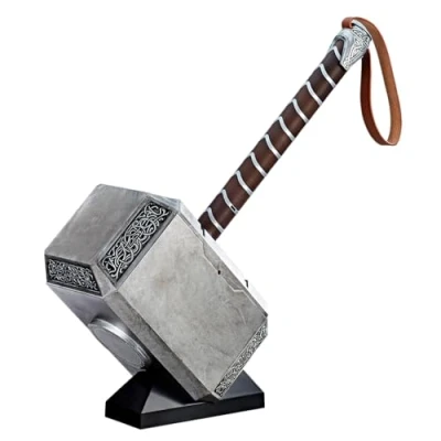 1:1 full scale 19.75-inch premium role play hammer Authentically designed wrist strap and pommel Voice-activated light features reveal the symbol of Odin Premium detailing and finish Wield the mighty Mjolnir!, Manufacturer: Hasbro