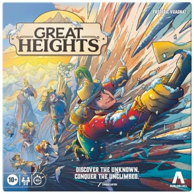 THE CLIMB OF THE CENTURY AWAITS: discover the unknown and conquer the unclimbed in the Great Heights strategy game! Lead a company of mountaineers up an unexplored mountain in an epic race to the top IMMERSIVE HISTORICAL ADVENTURE: set in the golden age of mountaineering, this thoughtfully crafted game shines with historically accurate details and a quirky cast inspired by real mountaineers HOW TO PLAY: players move mountaineer pawns along their board’s path by drafting cards to choose resources, make the news and more. Pick the best cards to play, pass the rest and earn the most points to win EASY TO LEARN, FUN TO MASTER: this highly re-playable game is easy to learn but has strategic depth. The tension builds with the ascent, as players make game-changing choices and show off strategies PREMIUM COMPONENTS & CUSTOM ART: includes 45 cards and 4 unique gameboards with delightfully deadpan artwork, plus 20 wooden mountaineer pawns, 35 wooden rescue dogs and more, Manufacturer: Hasbro
