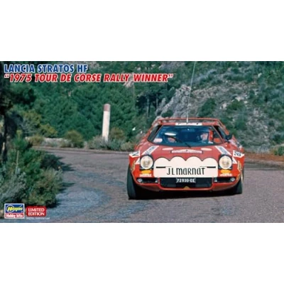 Plastic model kit of an Italian car with 147 pieces. Decals 1975 TOUR DE CORSE RALLY WINNER Team Chardonnet No. 6 / B. Darniche. Length built 161 mm / width 80 mm., Manufacturer: Hasegawa