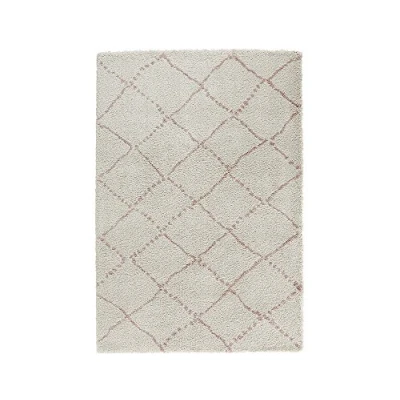 Hash Rug Round High Pile Living Room Soft Fluffy Long Shaggy Flokati Diamond Pattern for Kitchen Hallway or Bedroom Cream Pink Diameter 160 cm