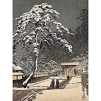 Hasui Honmon Tempel Japan Schnee Malerei Kunstdruck Leinwand Premium Wanddekoration Poster Wandbild
