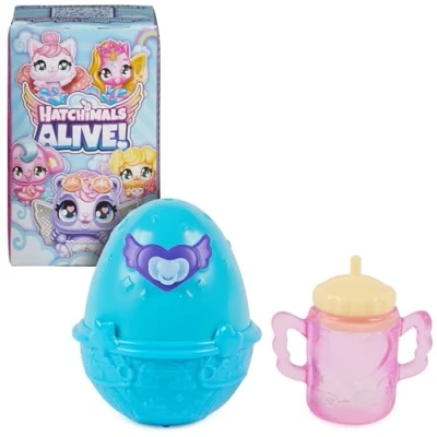 LOVE YOUR HATCHIMALS TO LIFE: With your love and care, you can magically bring Hatchimals Alive characters to life in a whole new way. The colourful surprise eggs hatch like real eggs. Who will you hatch? SELF-HATCHING EGG: Nurture the egg and begin the hatch by feeding your egg. Remove the soother, fill the bottle with water, squeeze it into the Hatchimals egg and your friend will start hatching before your eyes NURTURING STORYTELLING: After the reveal, the bottle and soother add to your pretend-play storytelling. Feed your character and place the soother in its mouth COLLECT THEM ALL: Water. Hatch. Surprise. Collect 18 Hatchimals Alive surprise toys for girls and boys — unicorns, puppies, kitties and more. Scan the QR code on the box to keep track of your collection. Great kids’ gifts Includes: 1 Hatchimals, 2 Accessories, 1 Instruction Sheet SURPRISE TOYS FOR 3-YEAR-OLD GIRLS AND BOYS: Hatchimals for girls and boys aged 3 and up. Discover toys and games, toy figures and playsets, flying toys, dolls and accessories (toys each sold separately), Manufacturer: Spin Master