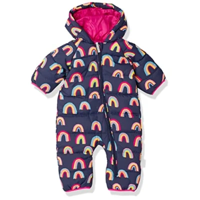 Hatley Baby Girls' Winter Bundler Toddler Down Alternative Jacket, Vibrant Rainbows, 9 12 Months