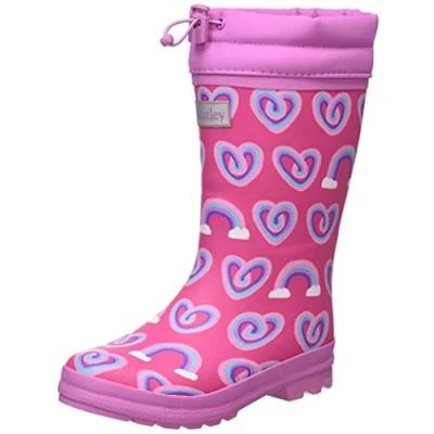 Hatley Boy's Girl's Rain Boot, Twisty Rainbow Hearts, 4 UK Child