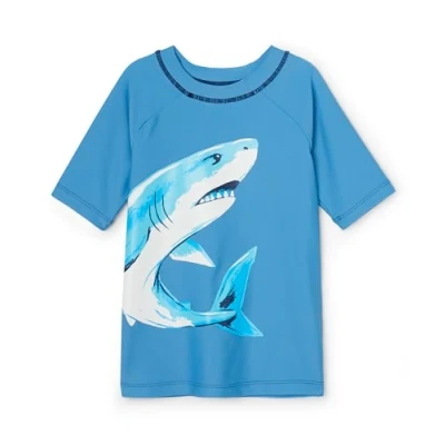 Hatley Boy's Short Sleeve Swim Rash Guard Shirt, Deep Sea Shark, 7 Years