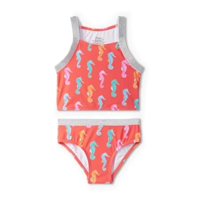 Hatley Girls Two Piece Swim Shorts Swimsuit, Painted Sea Horse, 2 Years