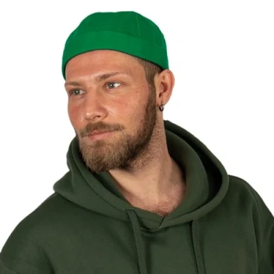 HATSQUARE Cotton Docker Cap, Unisex Brimless Men Skull Beanie Hat, Women Cuffed Hat Green