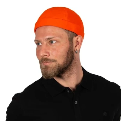 HATSQUARE Cotton Docker Cap, Unisex Brimless Men Skull Beanie Hat, Women Cuffed Hat Orange