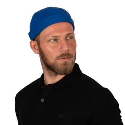 HATSQUARE Cotton Docker Cap, Unisex Brimless, Men Skull, Brimless Beanie Hat, Women Cuffed Hat Blue