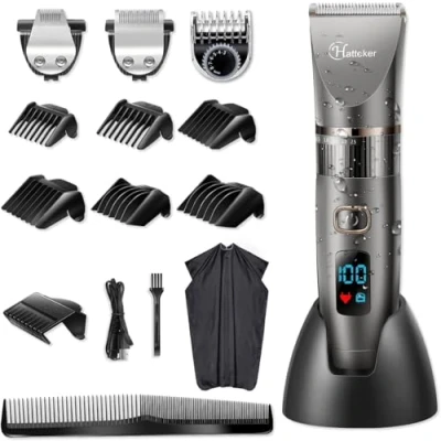 Hatteker Professional Hair Clipper Cordless Clippers Trimmer Beard Shaver Detail Cutting Kit for Men Waterproof