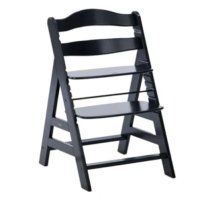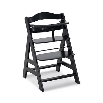 hauck Alpha+, Black Wooden High Chair 6 Months to Adult Sustainable FSC Certified Beechwood Toddler Feeding and Entertainment Chair, Inclusive 5 Point Harness Bumper Bar Crotch Strap