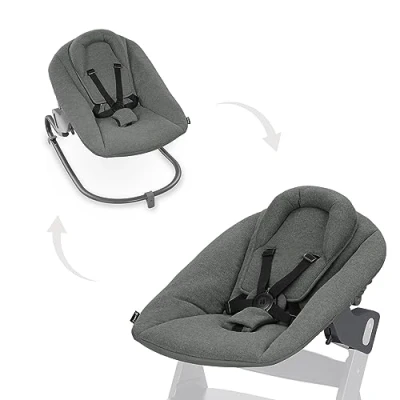 hauck Alpha Bouncer Premium, Dark Grey Baby Seat for Alpha+ Wooden Highchair with 5 Point Harness, Bouncing Frame & Reducer, from Birth up to 9 kg