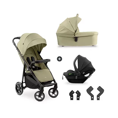 hauck Shop N Care Trio Set, Olive Lightweight Pushchair (only 8.5 kg) with Snack Tray, Cup Holder & Raincover, Fully Reclining up to 22 kg, Pram Unit i Size Car Seat from Birth