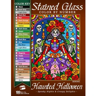 Haunted Halloween Stained Glass Mosaic Color By Number: Spooky Nights & Creepy Delights (Stained Number Collection)