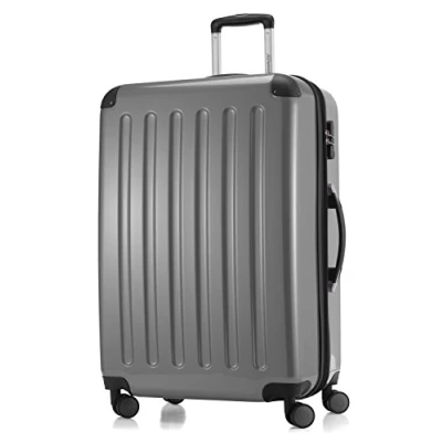 FOR EXTRA LUGGAGE: Large hard shell suitcase 75 x 50 x 30 cm (H x W x D), 5.2 kg and 119 litres, suitable for trips of 2–3 weeks, expandable by approx. 20% COMFORTABLE TRANSPORT: Four rubberised 360° swivel double wheels are quiet and smooth on uneven surfaces, with a stable 3-stage telescopic handle and carry handles on top and side ROBUST MATERIAL: High-gloss ABS shell with polycarbonate coating offers high impact resistance, stability and durability, supported by shock-absorbing corner protectors REPLACEABLE PARTS FOR LONG USE: Wheels, telescopic handle and carry handles are screwed and can be reordered and replaced when needed for long-term reliability MORE SECURITY: Integrated combination lock protects personal belongings from unauthorised access and is easy to operate