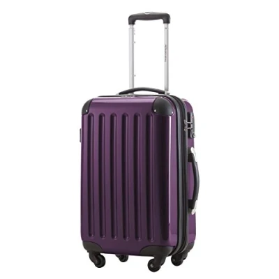FOR ALL AIRLINES: With this hand luggage of 55 x 35 x 20 cm (HxWxD), 3.2 kg and 42 generous liters, you will get on any plane in a relaxed way - it is suitable for all airlines. SOLID MATERIAL: Shiny ABS surface with polycarbonate coating. The suitcase is particularly STABLE, SHOCK RESISTANT and UNBREAKABLE. COMFORTABLE TRANSPORT: The 4 rubberized WHEELS, rotating 360 °, are particularly quiet and easy to handle. The fully retractable TELESCOPIC handle is extremely stable and ensures an upright posture. HANDLES on the top and side allow easy transport. MORE VOLUME: Extra space for souvenirs thanks to the generous expansion of the volume (around 20%) by pulling on a zipper. MORE SECURITY: The integrated TSA combination lock protects personal items against unauthorized access. The lock meets the highest security standards for luggage and is easy to use.