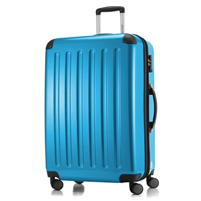 FOR LONG VACATIONS: Hard shell suitcase of 75 x 50 x 30 cm (HxWxD), 5.2 kg and 119 liters, suits perfectly for trips of 2-3 weeks. SOLID MATERIAL: Shiny ABS surface with polycarbonate coating. The suitcase is particularly STABLE, SHOCK RESISTANT and UNBREAKABLE. Thanks to the shock-absorbing protective corners, this cabin baggage keeps its shape, even in case of rough handling COMFORTABLE TRANSPORT: 4 rubberized DOUBLE WHEELS, rotating 360 °, particularly quiet and easy to handle. They offer pleasant walking comfort on any surface. The fully retractable TELESCOPIC handle is extremely stable and ensures an upright posture. HANDLES on the top and side allow easy transport MORE VOLUME: Extra space for souvenirs thanks to the generous expansion of the volume (around 20%) by pulling on a zipper MORE SECURITY: Integrated TSA combination lock protects personal items against unauthorized access. The lock meets the highest security standards for luggage and is easy to use