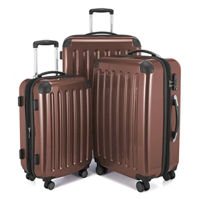 HAUPTSTADTKOFFER Alex Set of 3 Hard side Luggages Trolley Suitces Expandable, TSA, (S, M & L), brown