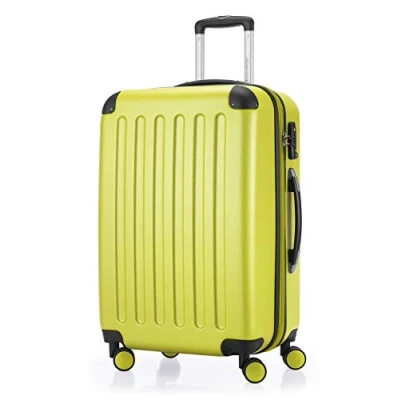 FOR SHORT HOLIDAYS: Medium-sized expandable suitcase (65 x 41 x 26 cm) for bus journeys, train journeys + one week holidays FOR SHORT HOLIDAYS: The hardshell suitcase of 65 x 41 x 26 cm (HxWxD), 4.2 kg and 74 generous liters, is perfect for trips of 1-2 weeks, by plane, train or bus. SOLID MATERIAL: The mat ABS surface gives the suitcase its elegant finish. The suitcase is particularly STURDY and SHOCK RESISTANT. Thanks to the shock-absorbing protective corners, this cabin baggage keeps its shape, even in case of rough handling. COMFORTABLE TRANSPORT: The 4 rubberized DOUBLE WHEELS, rotating 360 °, are particularly quiet and easy to handle. The fully retractable TELESCOPIC handle is extremely stable and ensures an upright posture. HANDLES on the top and side allow easy transport. MORE VOLUME: Extra space for souvenirs thanks to the generous expansion of the volume (around 15%) by pulling on a zipper.