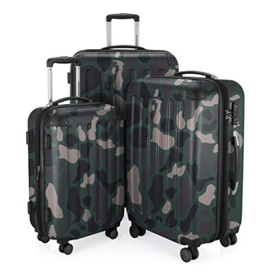 HAUPTSTADTKOFFER Spree Set of 3 Hard Side Luggages Glossy Suitcase Hardside Spinner Trolley Expandable (55, 65 & 75 cm) TSA, Camouflage