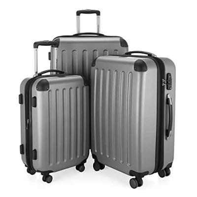 Comfortable set of 3: a suitable travel case for every occasion. The hand luggage (55 x 36 x 21 cm) is a comfortable companion for almost any airline. The medium suitcase (65 x 41 x 26 cm) is suitable for travelling from 1-2 weeks. The large hard shell trolley (75 x 50 x 30 cm) offers generous space for the big holiday from 3 weeks. 3-PIECE SET: A suitcase suitable for every occasion. The hand luggage (55 x 36 x 21 cm) is a comfortable companion for almost all airlines. The medium size suitcase (65 x 41 x 26 cm) for trips of 1-2 weeks. The large suitcase (75 x 50 x 30 cm) for long vacations from 3 weeks. SOLID MATERIAL: The mat ABS surface gives the suitcase its elegant finish. The suitcase is particularly STURDY and SHOCK RESISTANT. COMFORTABLE TRANSPORT: The 4 rubberized DOUBLE WHEELS, rotating 360 °, are particularly quiet and easy to handle. The fully retractable TELESCOPIC handle is extremely stable and ensures an upright posture. HANDLES on the top and side allow easy transport. MORE VOLUME: Extra space for souvenirs thanks to the generous expansion of the volume (around 15%) by pulling on a zipper.