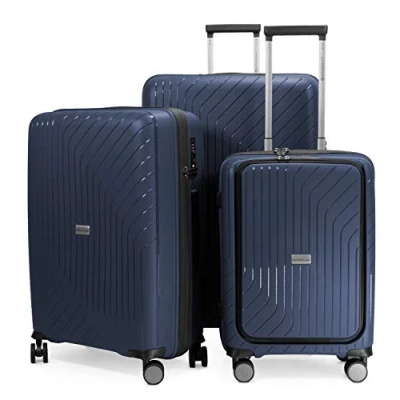 Hauptstadtkoffer TXL Lightweight Luggage Set of 3 Hard Side Trolley Carry On with Laptop Compartment + Middle & Large Sized trolleys, Polypropylene, 55 cm 66 76 cm, Darkblue