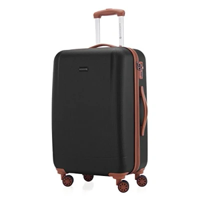 Measuring 68 x 44 x 25 cm, this 3.6 kg lightweight has a generous volume of 63 liter volume. The suitcase is a perfect companion for city trips, business travels and short vacations. The hard shell is made from matt ABS, a very light plastic that is extremely robust and stable, highly shock-resistant and unbreakable. The ergonomic and fully retractable push button telescopic handle is adjustable to three levels (39 / 45 / 52 cm), ensuring an upright posture at all times. High rolling comfort is guaranteed by 4 rubberized, 360° rotating double wheels. The handle on top of the suitcase allows effortless carrying at any time. Fully lined interior with multi-use organizational pockets for easy packing and extra protection for your items during long trips. The suitcases can be stacked and stored with minimum space requirements. The TSA lock is highly recommended for travel to the US: the suitcase can be opened and closed by the airport security staff with a special key; thereby, damages due to a forced opening will be avoided. Of course, the zipper can be locked and protects the contents from unauthorized access.