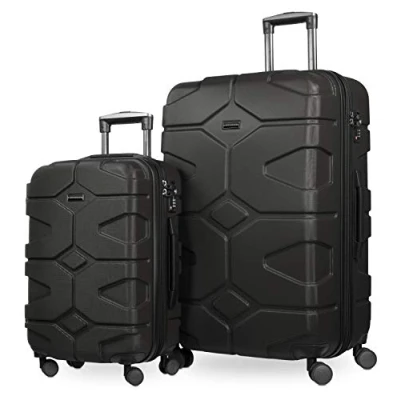 Set of 2 suitcases "X-Kölln": Hand luggage (58 x 40 x 23 cm) Large suitcase (76 x 49 x 33 cm), both suitcases are expandable up to 170 Liter, Ideal for any travel occasion The hard shell is made from matt ABS, a very light plastic that is extremely robust and stable, highly shock-resistant and unbreakable. The ergonomic and fully retractable telescopic handle with a push button is adjustable to three levels, ensuring an upright posture at all times. High rolling comfort is guaranteed by 4 rubberized, 360° rotating double wheels. The handle on top of the suitcase allows effortless carrying at any time. Fully lined interior with multi-use organizational pockets for easy packing and extra protection for your items during long trips. The suitcases can be stacked and stored with minimum space requirements. The TSA lock is highly recommended for travel to the US: the suitcase can be opened and closed by the airport security staff with a special key; thereby, damages due to a forced opening will be avoided. Of course, the zipper can be locked and protects the contents from unauthorized access.