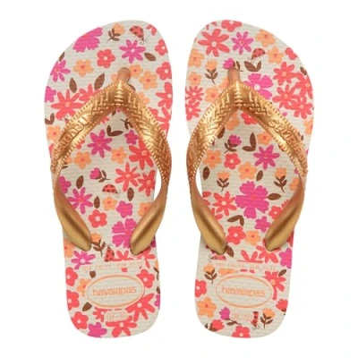 Havaianas Kids Flores, Flip Flops, Comfortable, Durable and Fun, Sole with Floral Print, Metallic Straps Non Slip Sole, Girls
