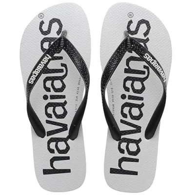 TOP LOGOMANIA. The perfect adult flip-flops for the brand lovers. Combining the iconic Top shape with a bold, modern design, they stand out as the ideal choice for those seeking comfort and style with a distinctive touch LOGO ON THE SOLE. The footwear stands out with the logomania trend, featuring a large print of the iconic logo on the sole and a pop-up logo on the straps. It’s a style statement for Havaianas lovers who want to showcase their passion for the brand COMFORT AND STABILITY. They feature a flexible, lightweight sole that adapts to the movement of the foot, while the soft, ergonomic straps ensure a secure and comfortable fit for any moment HIGH-QUALITY MATERIALS. Made with high-quality materials, the straps are made of PVC, while the sole is crafted from durable rubber, ensuring long-lasting durability over time CARE INSTRUCTIONS. Clean with a soft sponge dampened with water and neutral soap. Avoid chemical products and dry in a well-ventilated, shaded area to preserve their shape, colour, and original features