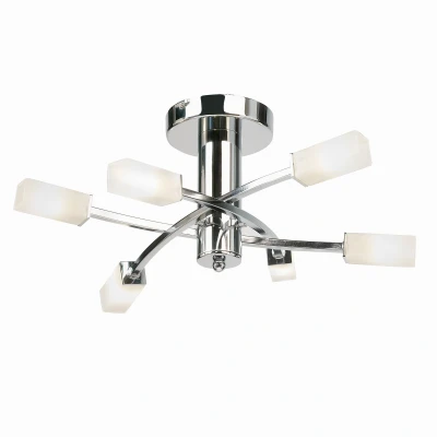 Havana 6 Light Semi Flush Multi Arm Ceiling Chrome, Acid Etched Glass, G9