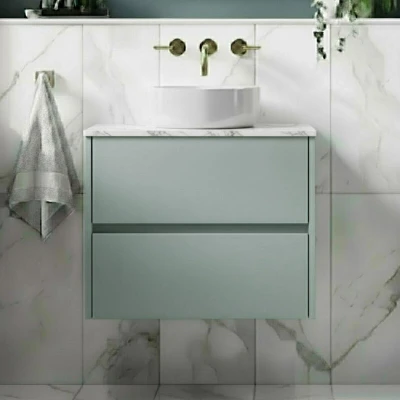 Havana Wall Hung 2 Drawer Vanity Unit with Carrera Marble Worktop 600mm Wide Coastal Grey
