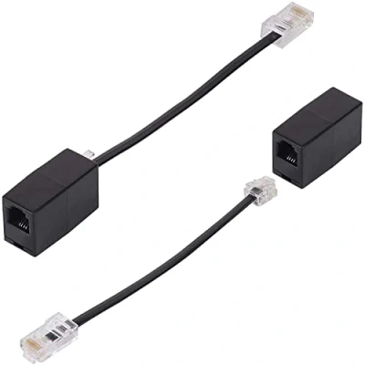 RJ45 to RJ11 telephone Jack adapter cable connects analog telephone devices (phone, fax, caller ID) through the Ethernet jack. Converts phone jack to network jack, suitable for phone line to network line use. R11 to RJ45 telephone to Ethernet Converter adapter cable with one RJ45 male plug and one RJ11 female jack supports the free choice of RJ45 network cable and RJ11 phone cable to transfer data according to specific needs. Made of high quality materials and gold-plated metal contacts to ensure good connection and sound quality. Strong connection with no signal loss. Adopt high quality crystal head, use electronic wire inside, stable signal, use telephone line to internet line, dial-up internet. Can be used in bad weather conditions, durable. Plug and play, easy to use, avoid complex wiring, no need to modify the Ethernet wall socket. Two pieces in a pack, meet your daily needs.