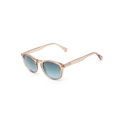 Rounded, transparent, polished champagne-coloured frame with blue gradient lenses Sunglasses category 3 filter, dark colouring, suitable for full sun outdoors, Absorb 82-92 Percent sunlight, Lens material: TR18 lenses bearing the Eastman seal, excellent optical quality and durability,Environmentally-friendly, 100 Percent UV protection, Lens Color: Black, Blue, Lens Appearance: Gradient Frame material: TR90, Frame Color: Champagne, Temple Color: Champagne Original Hawkers product, The box includes a microfiber cover and box Unisex Model. Size: Front 136.5 mm, Temples 145 mm, Bridge 20 mm, High 48.6 mm
