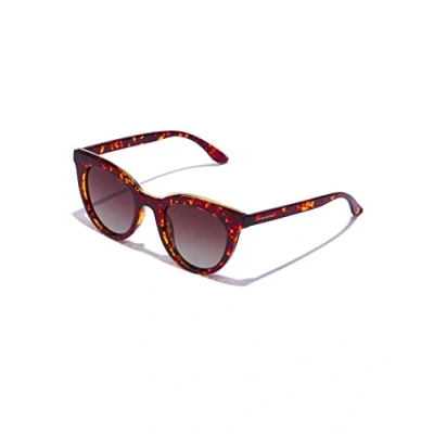 The polished, semi-translucent, honey and brown tortoiseshell frame of this rounded cat eye model is complemented by gold tone metallic detailing along the brow-line, and polarized, gradient brown lenses Polarized sunglasses: Reduces surface reflections and eye fatigue, providing superior sharpness and contrast, Sunglasses category 3 filter, dark colouring, suitable for full sun outdoors, Absorb 82-92 Percent sunlight, Lens material: Lenses made of polarised bio tac material, 100 Percent UV protection, Lens Color: Brown, Lens Appearance: Gradient Frame material: TR90, Frame Color: Carey, Gold, Temple Color: Carey Original Hawkers product, The box includes a microfiber cover and box Female Model. Size: Front 143 mm, Temples 145 mm, Bridge 23.5 mm, High 43.3 mm