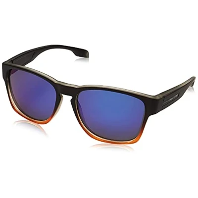 The sky blue polarized mirrored lenses are framed in a square matte black and translucent orange frame. The slightly rearward hinge on the front and sporty temples provide a subtle wrap-around feel. Polarized sunglasses: provides a vision without reflections, and natural contrast of colors. Category 3 lenses and UV400 protection offer superior anti-glare protection Sunglasses made of TR90 with the EMS seal, considered the best Nylon for frames in the world that provides more flexibility and resistance Hawkers Official Product. Included: Case, personalized box and set of decorative stickers Unisex sunglasses. Frame Measurements: Front: 143mm, Height: 43.4mm, Lens Diameter: 56mm, Bridge: 17mm; Temples: 140 mm