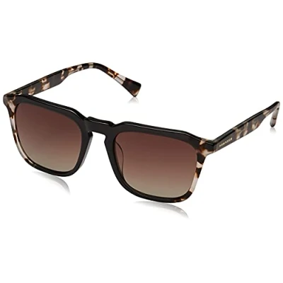 This geometric design is a squared reinterpretation of our best-selling Warwick model, The lenses are brown gradient, and the keyhole bridge and rims are black acetate, changing to a leopard-style tortoiseshell print acetate at the outer extremities and temples Sunglasses category 3 filter, dark colouring, suitable for full sun outdoors, Absorb 82-92 Percent sunlight, Lens material: TR18 lenses bearing the Eastman seal, excellent optical quality and durability,Environmentally-friendly, 100 Percent UV protection, Lens Color: Brown, Lens Appearance: Gradient Frame material: Acetate, Frame Color: Black, Carey, Temple Color: Carey Original Hawkers product, The box includes a microfiber cover and box Male Model. Size: Front 139 mm, Temples 140 mm, Bridge 20.5 mm, High 47.5 mm